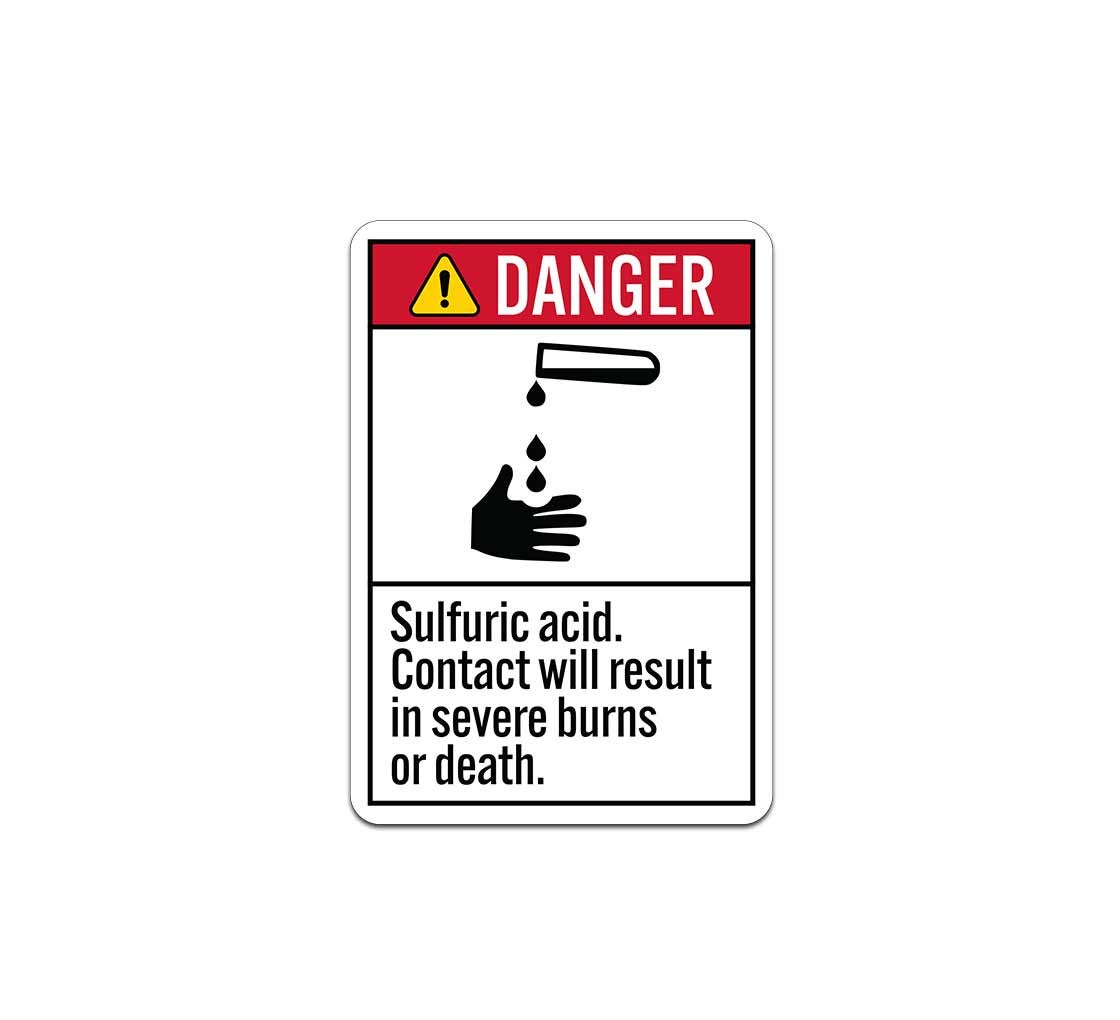 To ensure the safety of anyone nearby, it is important to label any container with sulfuric acid. Give a clear warning to protect your staff with this contact will result in severe death sign.