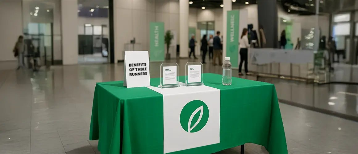 Beyond visibility, table runners also create consistency in branding. When paired with banners, signage or displays, they tie the whole setup together, giving your booth a cohesive and professional look. This uniformity helps customers instantly recognize your brand.