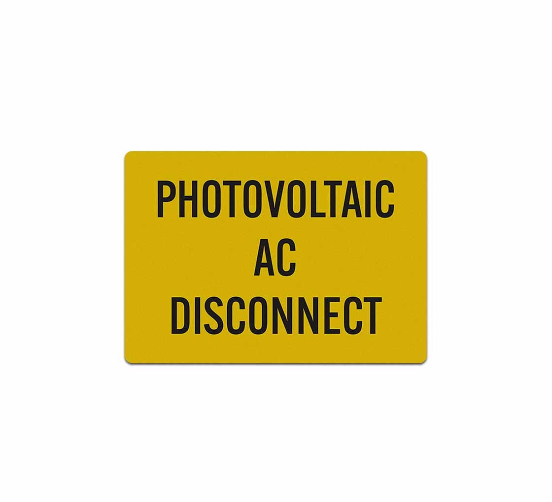 Our photovoltaic AC disconnect decals come equipped with adhesive backings. They adhere well to varied surfaces. Choose to get your signs laminated to add a protective top layer that helps repel water or debris, leaving your signs with crisp & clear graphics for easy readability.