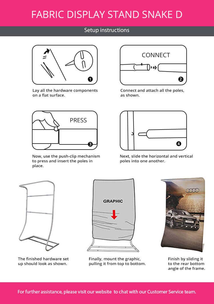 Our snake D fabric display stands are tailored to maximize your brand's visibility at any function. They offer a dependable solution for advancing your marketing impact through their durable construction and attractive design.