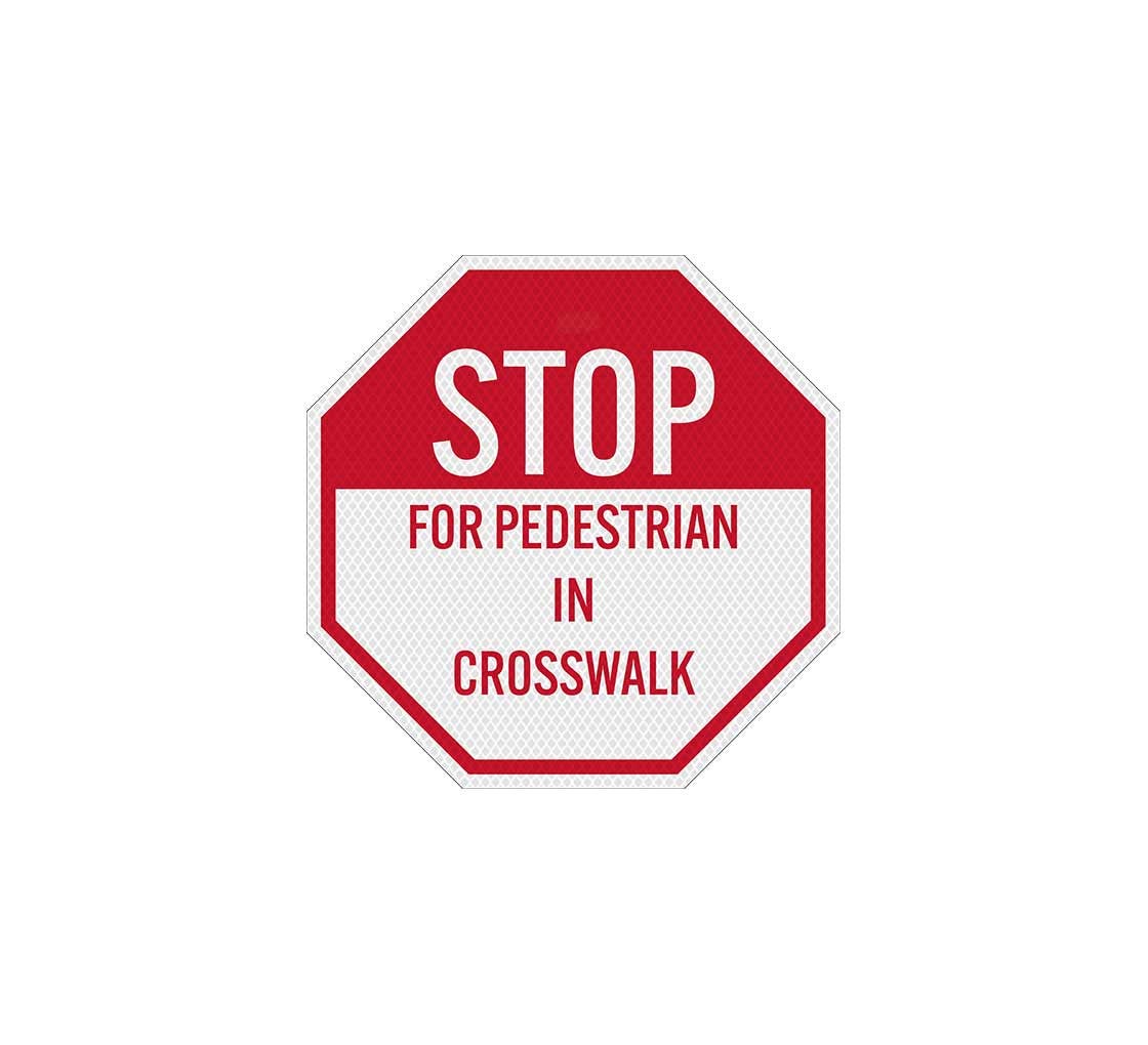 These pedestrian road signs feature sturdy and rustproof aluminum construction for prolonged outdoor use.