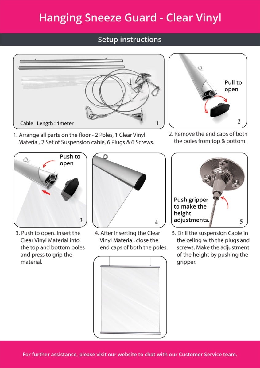 Establishments must provide exposure protection for consumers and staff to reduce the spread of infectious diseases. However, social separation may be problematic in many everyday situations that need intimate human engagement. Our sneeze guards hang from the ceiling and act as a barrier to block cough and sneeze droplets while allowing people to communicate normally.