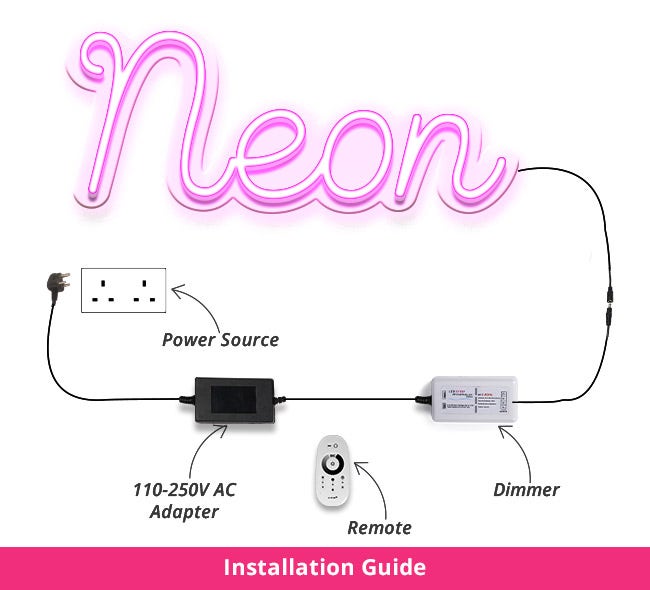 Constructed from durable Neon Flex, our neon restaurant signs deliver vibrant illumination while conserving energy. The sleek design is complemented by a 0.2" acrylic backboard for a modern, polished look. Each sign comes with a CE-certified power adapter and an additional 3' to 4' cable for hassle-free setup. Adjust the brightness with the included remote and dimmer to create the perfect atmosphere for any occasion.