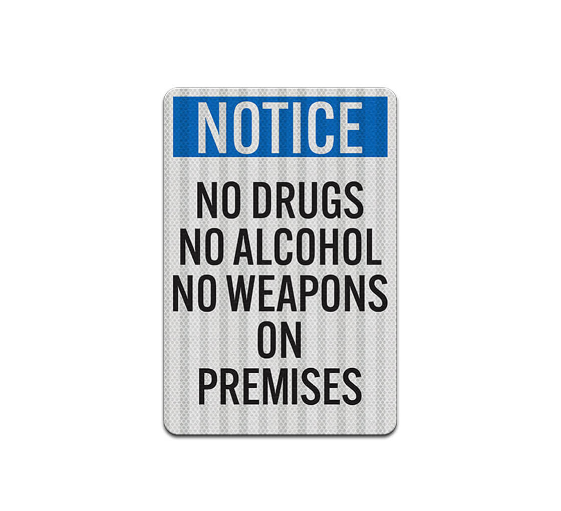 The digital printing used on these no drug signs produces a wide color gamut. The reflective signs attract the attention of passers-by from afar.