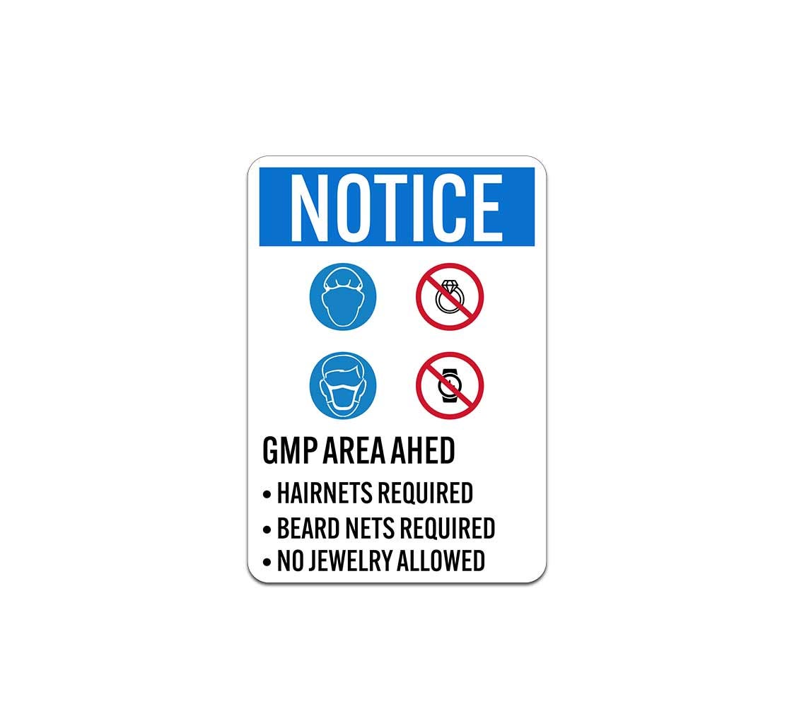 The 'beard net required' signs can adhere to many surfaces, such as sand cast, moderately rough surfaces and some low surface energy materials.