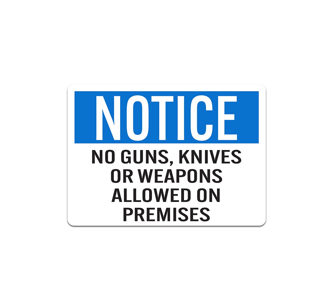 Establish boundaries and prohibit certain items from entering your establishment by displaying your policies clearly. The no weapon sign offers the ideal method for showing this information effectively.