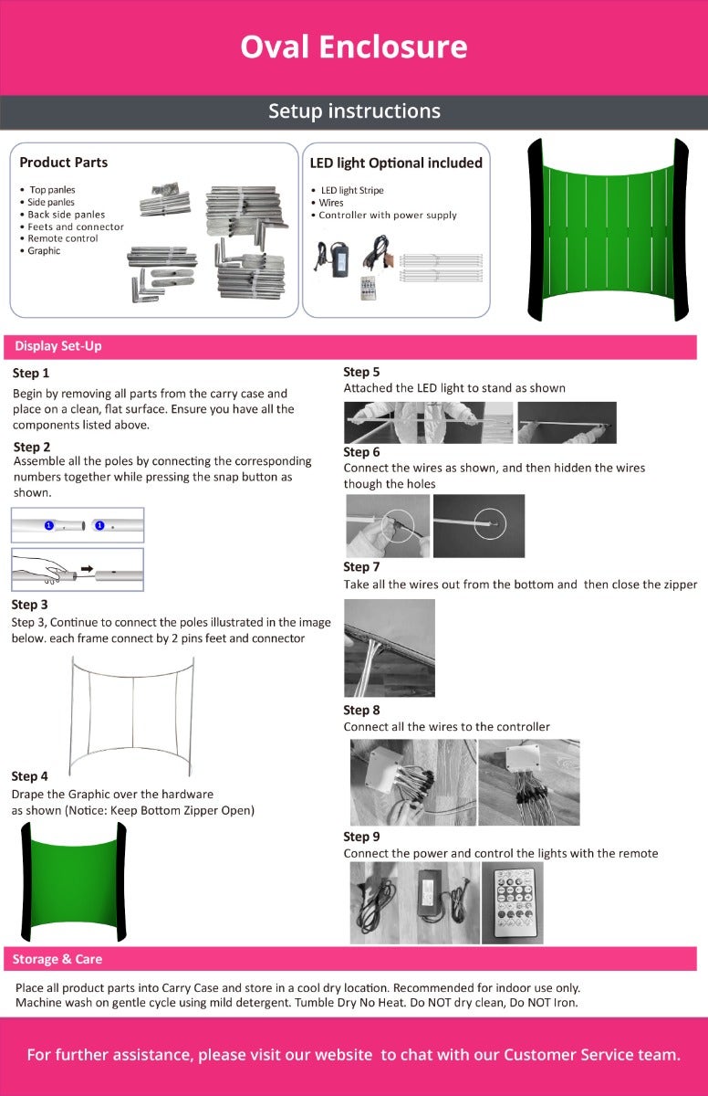 Dive into professional photography with our Oval Enclosure, the epitome of photo booth backdrops innovation. Crafted from premium polyester fabric with a hefty 260 GSM weight, this enclosure provides vivid, full-color images thanks to its cutting-edge 1440DPI, dye-sublimation printing process. Supported by sturdy 1.25" / 32mm aluminum tubes, it brings both stability and elegance to your event photo booth arrangement. As a portable photo booth, it's indispensable for those aiming to expand their photo booths for sale selection or specifically address the lively photo booth for parties market.