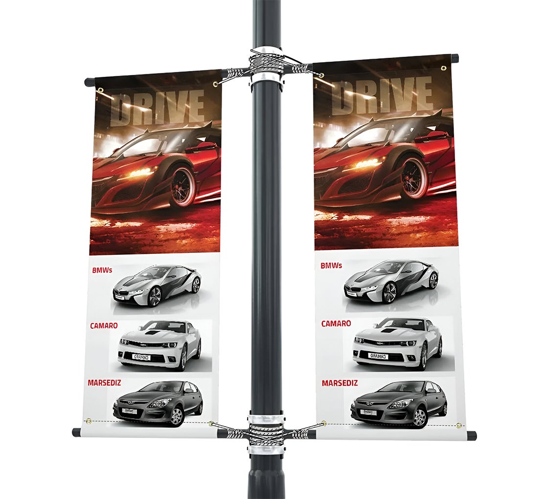 Make a lasting impression outdoors with our premium outdoor pole banners. Designed for streetscapes, campuses, and busy business districts, these light pole banners offer striking visibility and an upscale, professional presentation. Whether announcing an event, showcasing your logo, or sharing a seasonal campaign, our streetlight banners help you communicate with style and authority. Combining strength and sharp, colorful graphics, they create memorable impressions that last through every season.