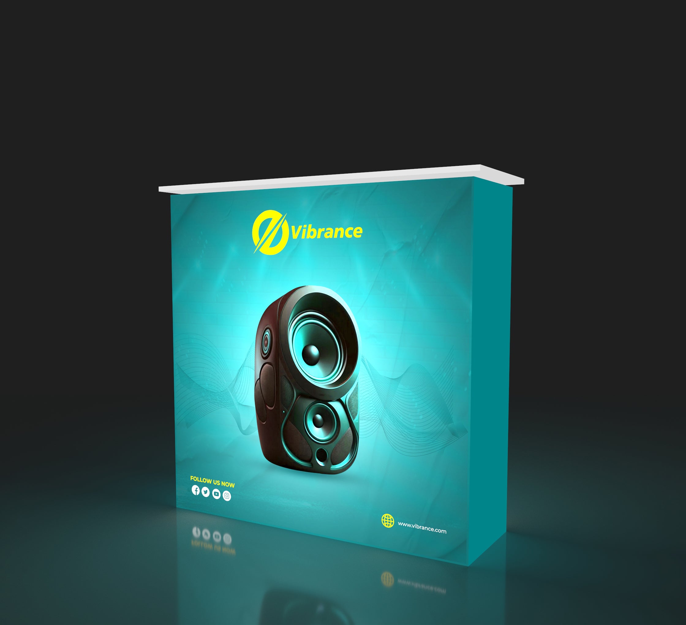 Dye Sub Printed Graphics: The counter includes dye sublimation printed graphics for both the front and back, with end caps for a finished look. These graphics can be either single-sided or double-sided, offering flexibility depending on your display needs. The backlit pop up counter complements your pop out banners, creating a cohesive and impactful presentation.