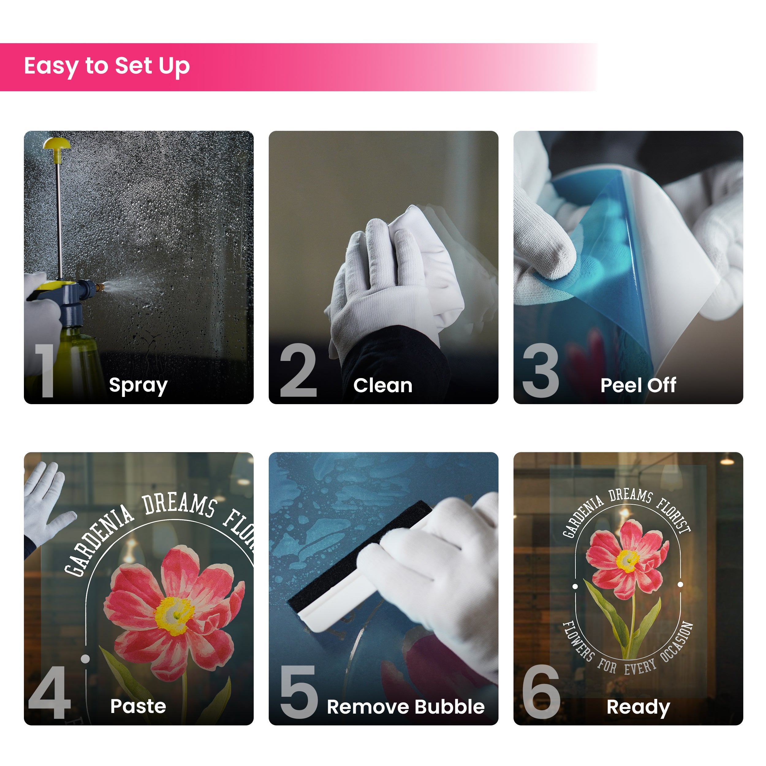 I installed this on our storefront glass and was blown away by the clarity and precision of the print. It adheres smoothly with no bubbles and gives a truly professional look. Removing and repositioning was effortless. A top‑quality product for any promotional or decorative use.