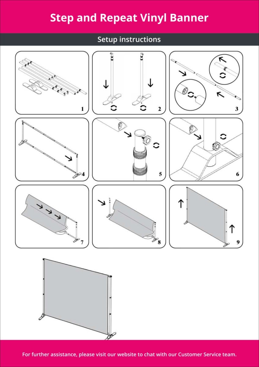 We Don't compromise on stability. Our step and repeat banner stand is designed for reliability. It is made of durable materials, Plus, its portable design ensures effortless transportation and assembly, saving your time and effort. ??Complement your Step and Repeat Banner with stunning displays. From pop-up banners and trade show displays to branded table covers, we have the tools to transform your event space. Complement your Step and Repeat Banner with other branded displays like custom vinyl banners, pop-up banners, trade show displays, and table covers to completely transform your event space.