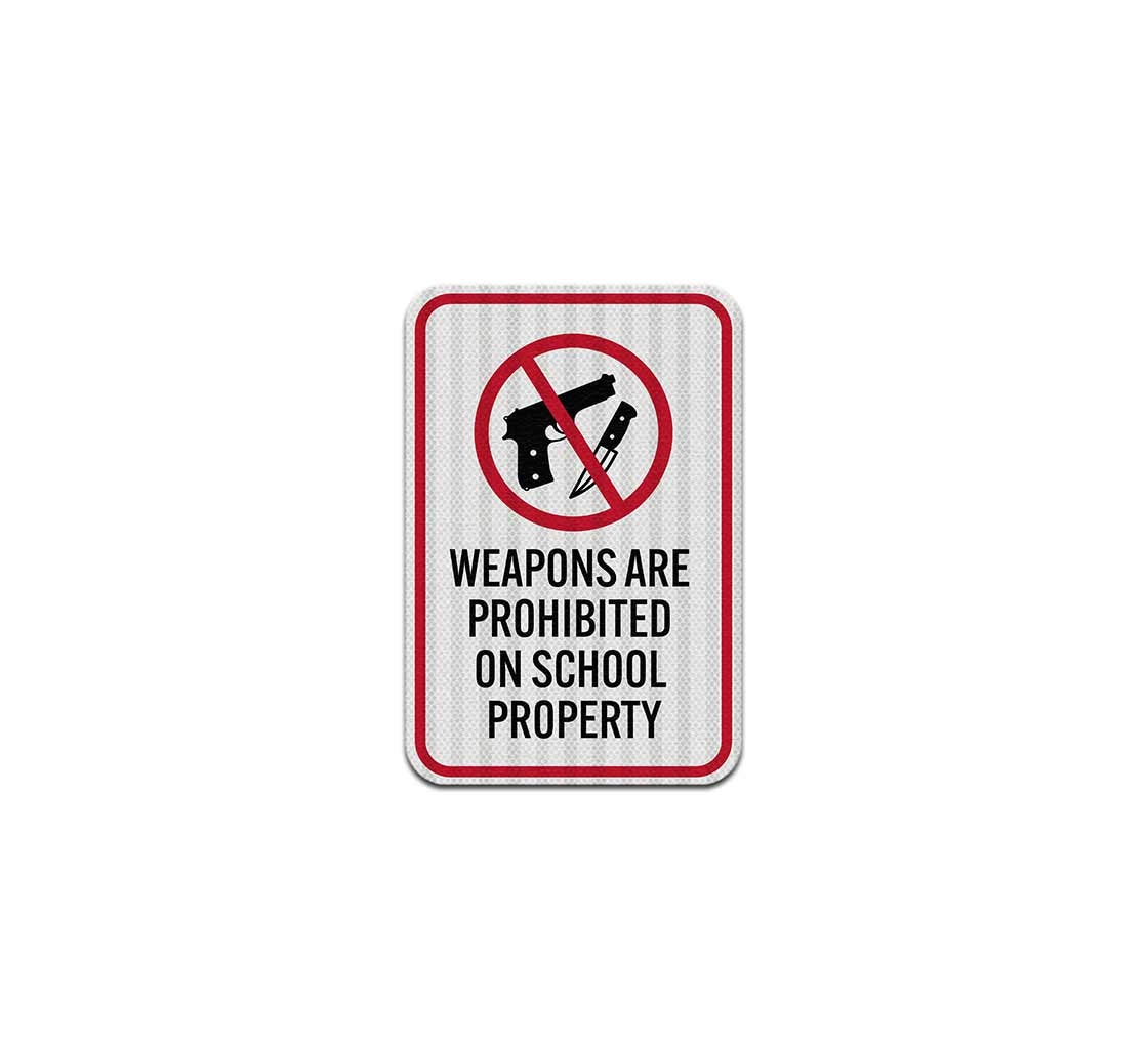 No weapons signs comprise rustproof aluminum base materials that are durable and suitable for outdoor use.